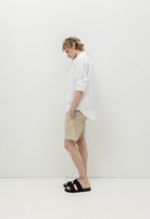 The Adny is a short that features a mid-rise and slim fit with added stretch for everyday ease. Crafted from lightweight 7 oz stretch denim in organic cotton, and elastane, it comes in a clean sand tone for a light, versatile look.