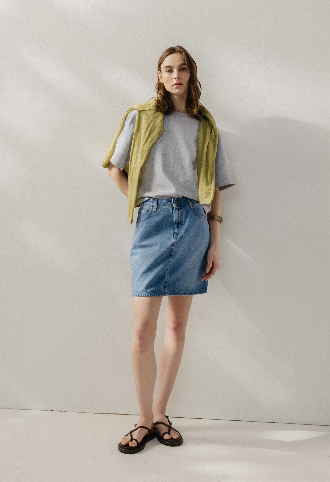 The ultimate short denim skirt, our Audry has a flattering mid waist, a straight cut and five pockets. It's made in our distinctive non-stretch, circular and organic cotton denim. A versatile piece that can be worn during all seasons.