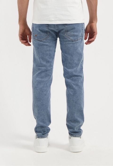 The Dunn combines a low-rise fit with a tapered leg and a rich steel blue wash for a cool, contemporary look. Made from 11 oz comfort stretch denim with 27% organic cotton, 25% TENCEL™ Lyocell x REFIBRA™, and recycled cotton and elastane for sustainable comfort.