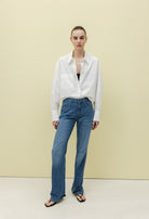 The Jamie in Medium Vintage Stone is a mid-rise, loose-fit jean that features a relaxed silhouette. Made from 12.25 oz. non-stretch denim, it blends organic cotton and Saxcell for a sturdy, sustainable feel. The medium vintage stone wash adds a soft, worn-in look. Zip fly.